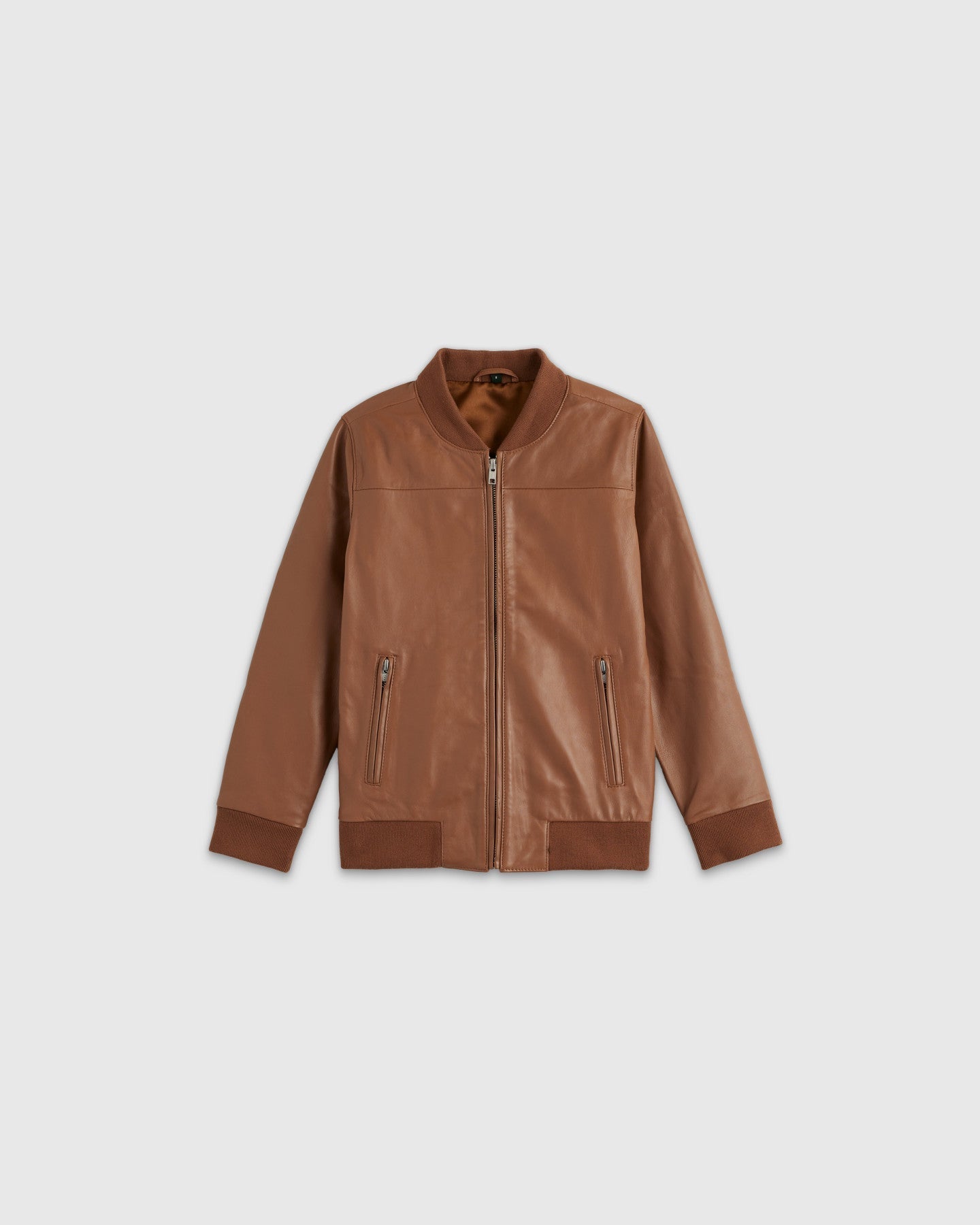 Your kid's wardrobe is about to get 100% cooler with our 100% Leather Bomber Jacket. This jacket will give them their first experience of luxe top-grain leather and is durable enough to last many rounds of hand-me-downs to brothers and sisters. Think iconic classic bomber styling, silver hardware, and ribbed knit trim details. Read more about what makes our leather special in our Leather 101 guide.