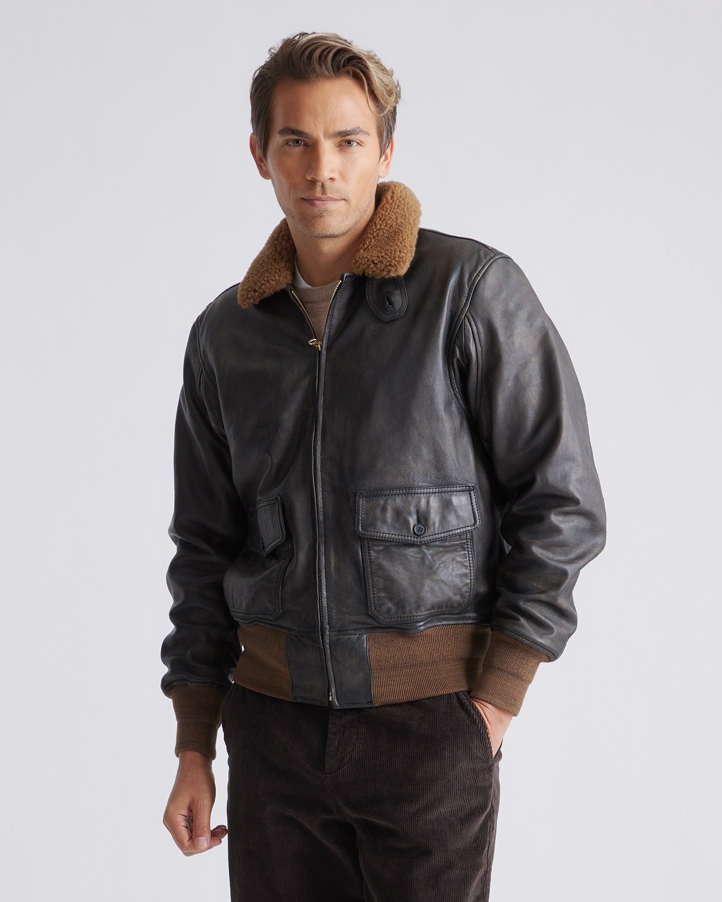 Inspired by the classic flight jackets worn by pilots in the early 1900s - but with a modern twist. Our Shearling Collar Leather Flight Jacket is made to keep you warm this winter, no matter the altitude. This jacket is specially washed for a perfectly broken-in, vintage look. It's a timeless investment piece (minus the investment). Read more about what makes our leather special in our Leather 101 guide.