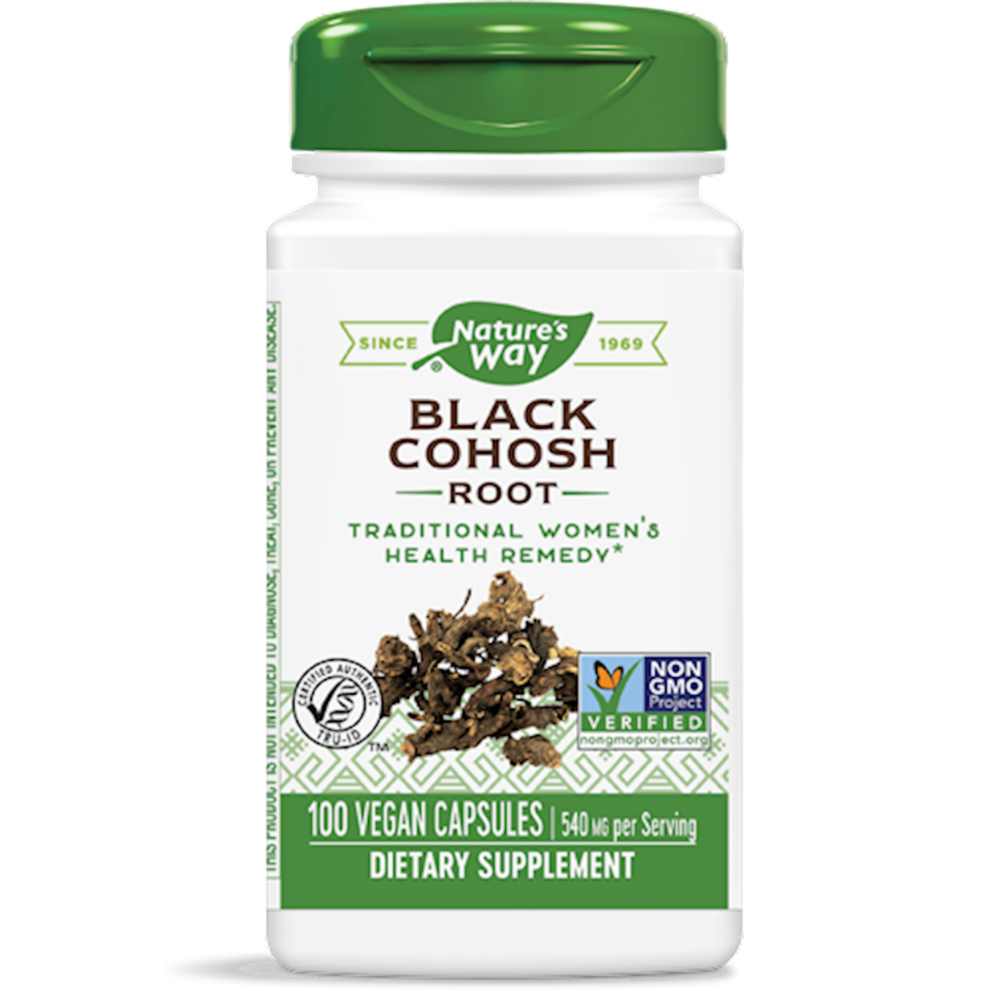 Serving Size: 1 Capsule Servings Per Container: 100 Disclaimer Amount Per Serving Black Cohosh (root) 540 mg Other ingredients: Gelatin (capsule), Magnesium stearate