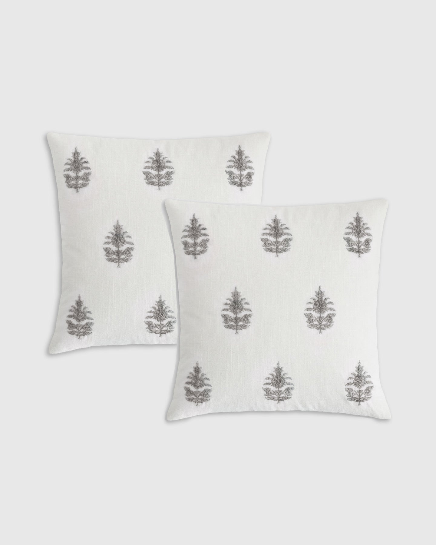 Block Print Embroidered Linen Pillow Cover - Set of 2
