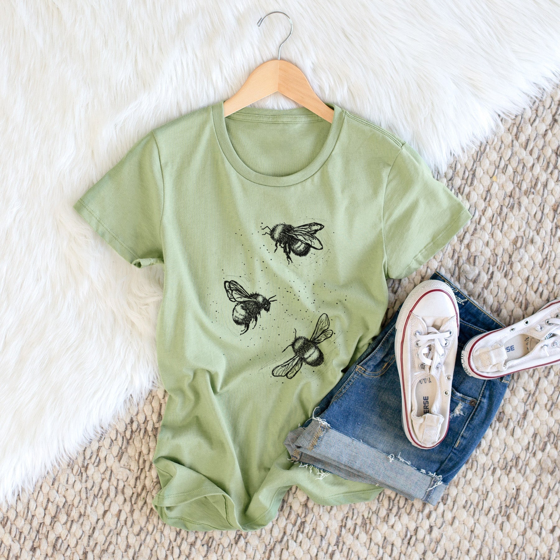 American Bumblebee Trio - Bombus Pensylvanicus - Women's Crewneck - Made in USA - 100% Organic Cotton
