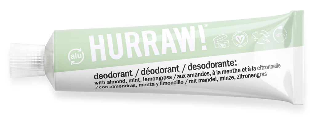 Hurraw Almond Mint Lemongrass BALMUNDER™ is a deodorant. Deodorants simply reduce the number of bacteria and thus, reduce the smell. Most 'natural' deodorants use a heavy not-so-great oily base such as: caprylic/capric triglycerides (palm), propylene glycol (petroleum), propanediol (gmo corn), hydrogenated vegetable oil (soy), and shea butter (latex/refined)... with minerals, salts, acids, herbs, essential oils, alcohols, etc. mixed in.