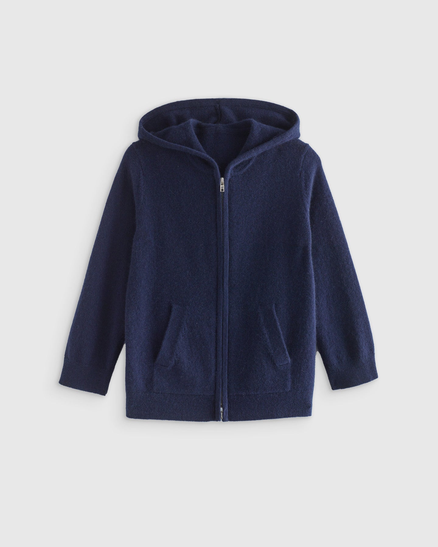 This full-zip hoodie is the perfect everyday layering piece. For a mini and me matching moment, pair with our women's or men's cashmere full-zip hoodie. Our all-natural cashmere has a cloud-like softness, meaning it won’t irritate your little one’s delicate skin. It is lightweight and breathable, so it will keep them warm without the risk of overheating. Due to its natural antibacterial qualities, it requires less frequent washing, and no dry cleaning is required.