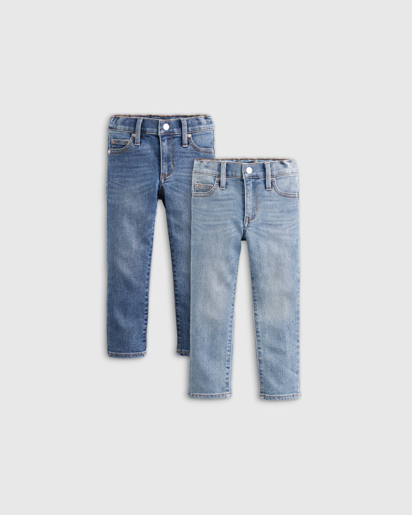 Not too skinny, not too straight—these slim-fit jeans are just right. Crafted from a high-quality cotton blend with a touch of stretch, this classic style has a comfy, flexible fit for kids on the move. With the convenience of a 2-pack, you'll have double the options to pair with all of your child's favorite tops.