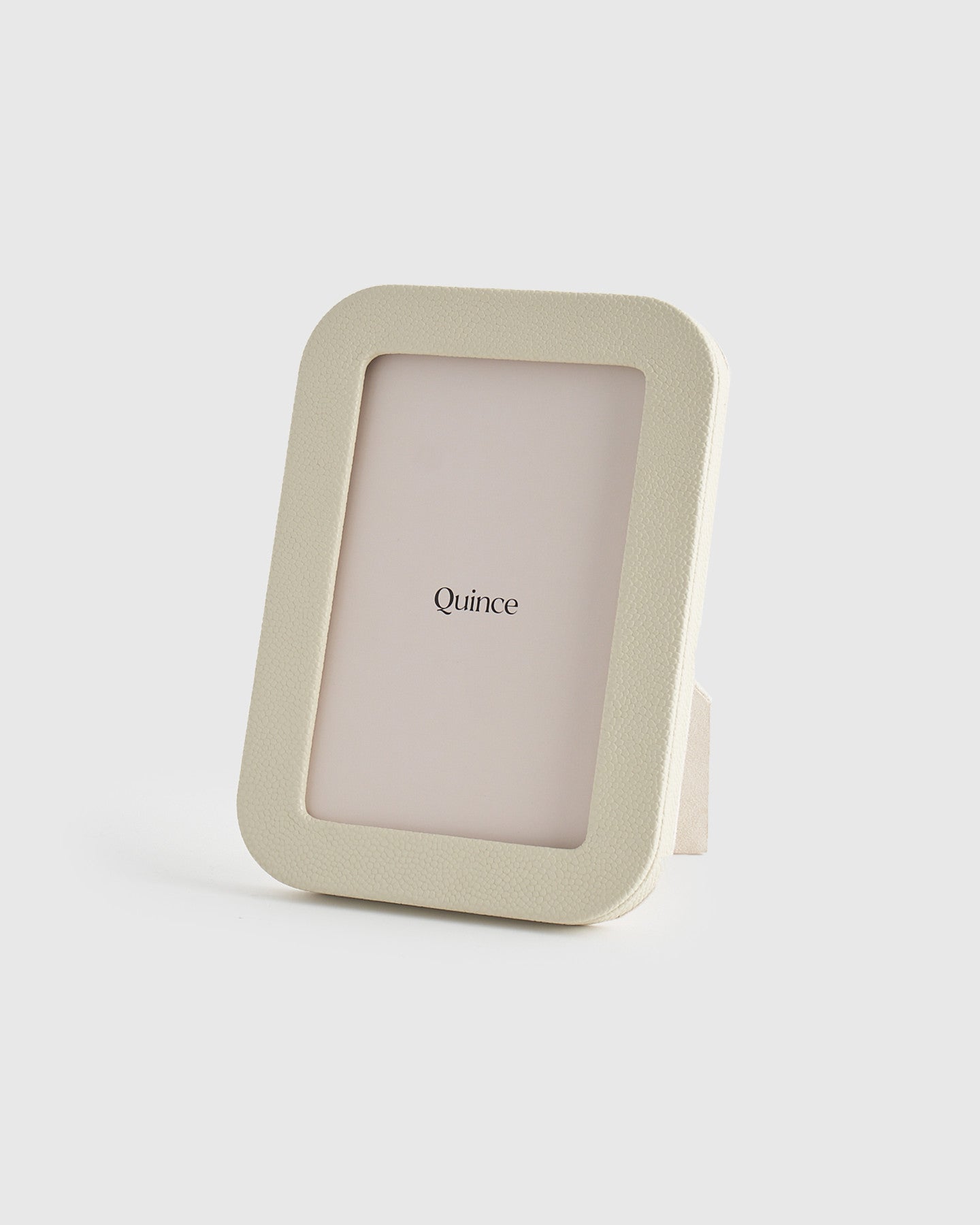 Your most treasured memories deserve the best. This stately frame is made with shagreen—an embossed leather, whose use goes back centuries and was particularly popular during the 19th century Regency era. The feel is pure luxury while the delicate textured pattern elevates the minimalist design of the wood frame, adding a refined elegance to your bookcase or side table.