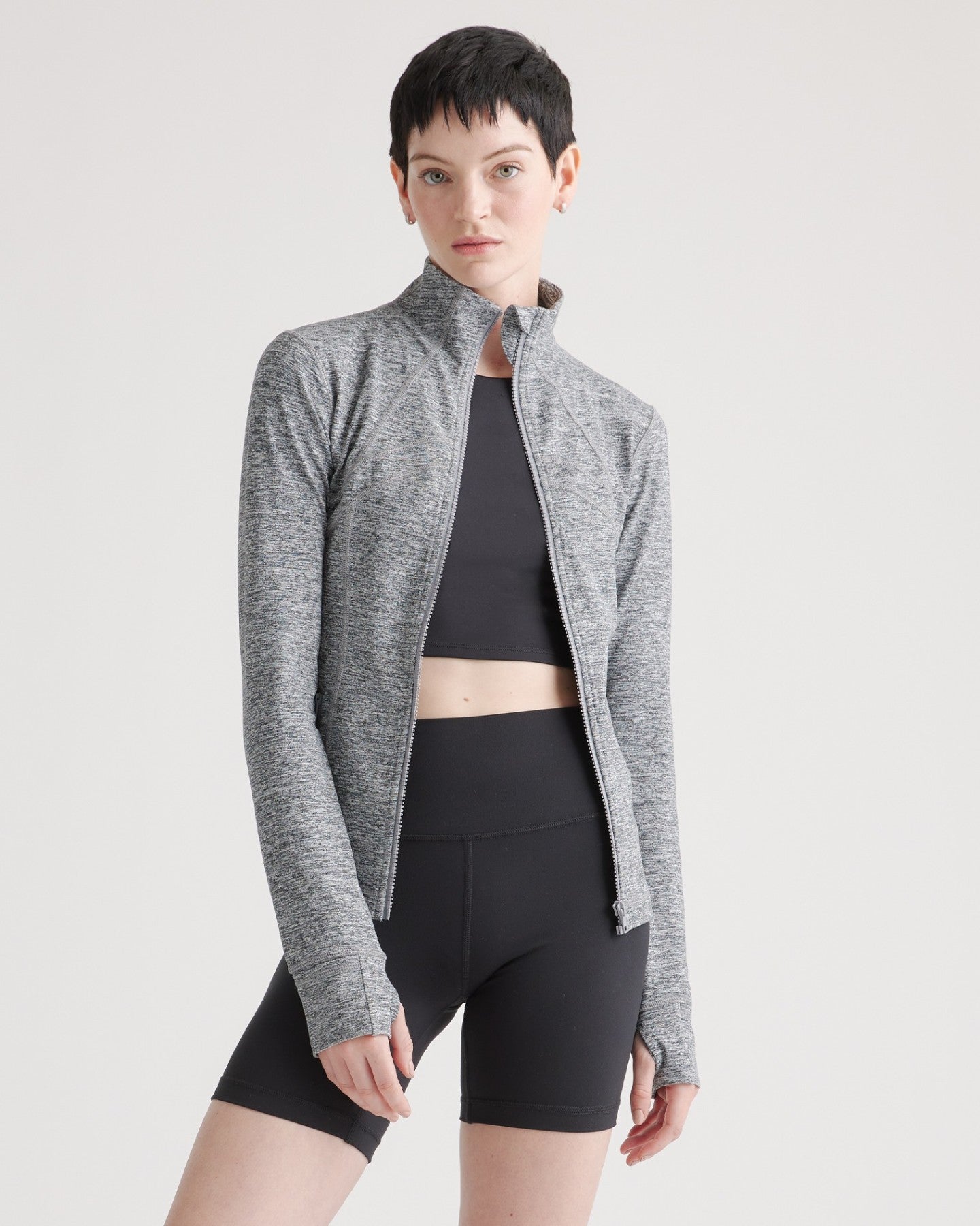 Our Ultra-Soft Jacket does it all. With a slim fit and thumbholes to keep everything in place, its super soft fabric will keep you comfortable whether you're hiking or heading into town. It's designed to be hip length and super versatile for all occasions. Plus, we included our GRS-certified poly yarn in this blend, which diverts plastics from ocean and landfill. So you can look good and feel good in this piece.