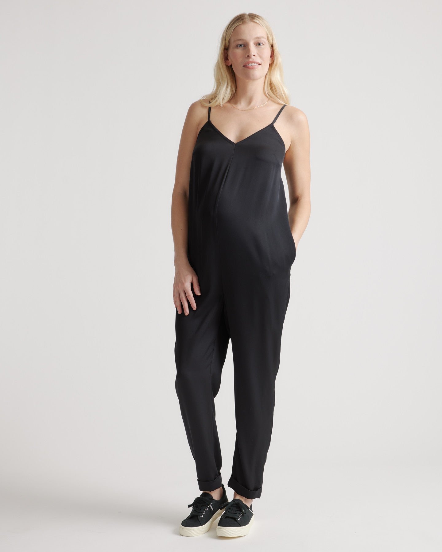 The perfect jumpsuit for maternity and beyond! This versatile jumpsuit is made from 93% mulberry silk for a luxe feel, and 7% spandex for a little stretch to accommodate your growing bump. The best part…our silk is washable. Easy to style and easy to wash for low-maintenance luxe. Plus, silk fiber contains 18 kinds of amino acids that make it amazing for skin nourishment, hypo-allergenic, and naturally thermoregulating to help maintain body temperature.