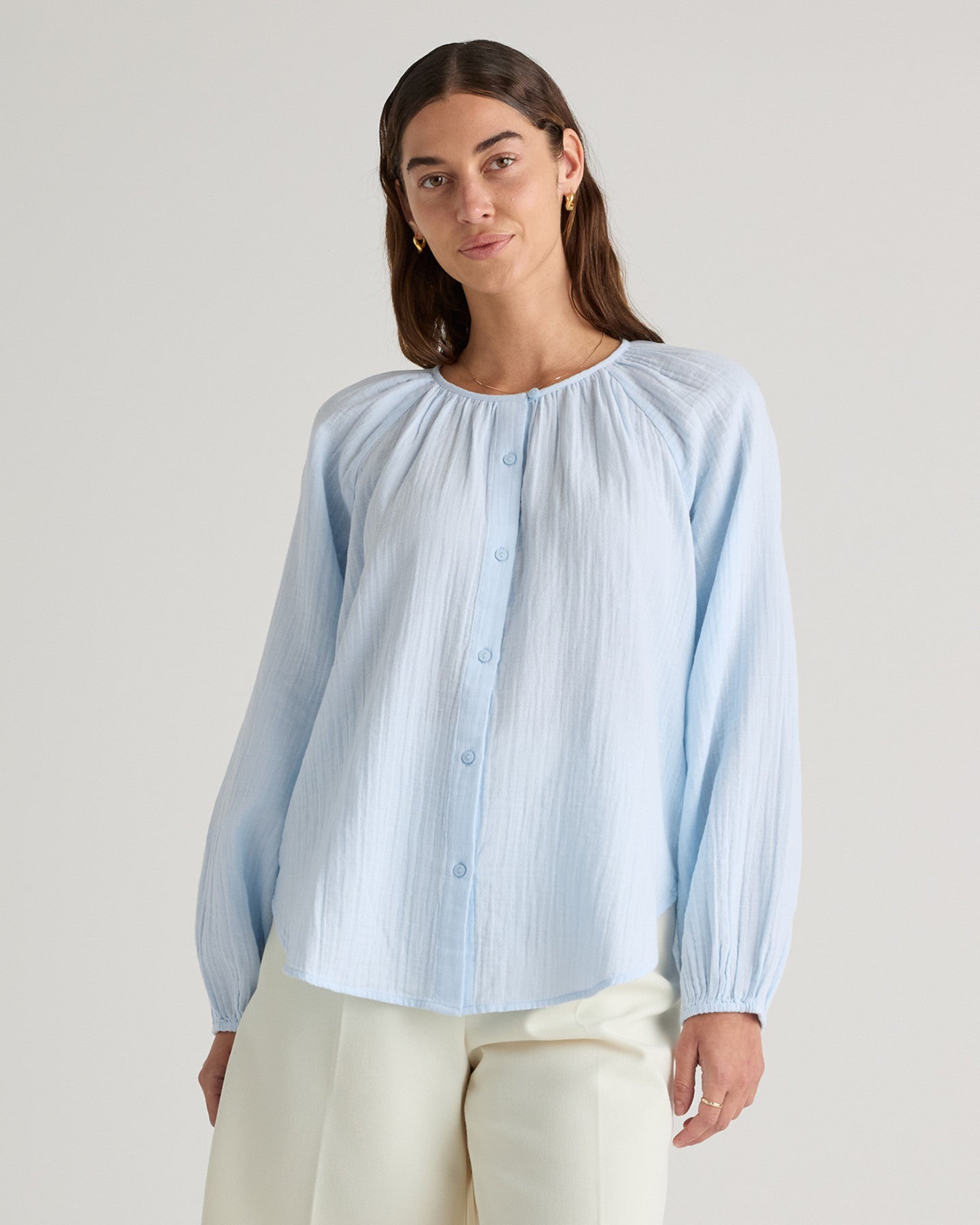 A polished take on boho style, our 100% Organic Cotton Gauze Peasant Blouse is a warm-weather must. Made from incredibly soft and breathable organic cotton, this lightweight gauze blouse keeps you cool and comfortable throughout the day. With its chic boatneck and billowy sleeves, this effortless style is the wardrobe upgrade you've been looking for.