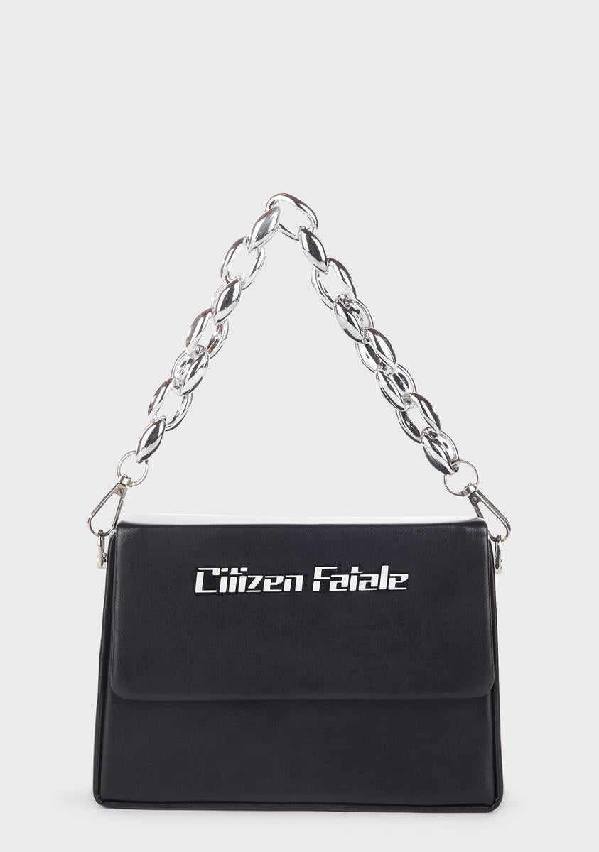 cuz you're the missing link. This handbag has a vegan leather construction, a detachable chain top strap, a top flap closure, and branded hardware detailing at front.